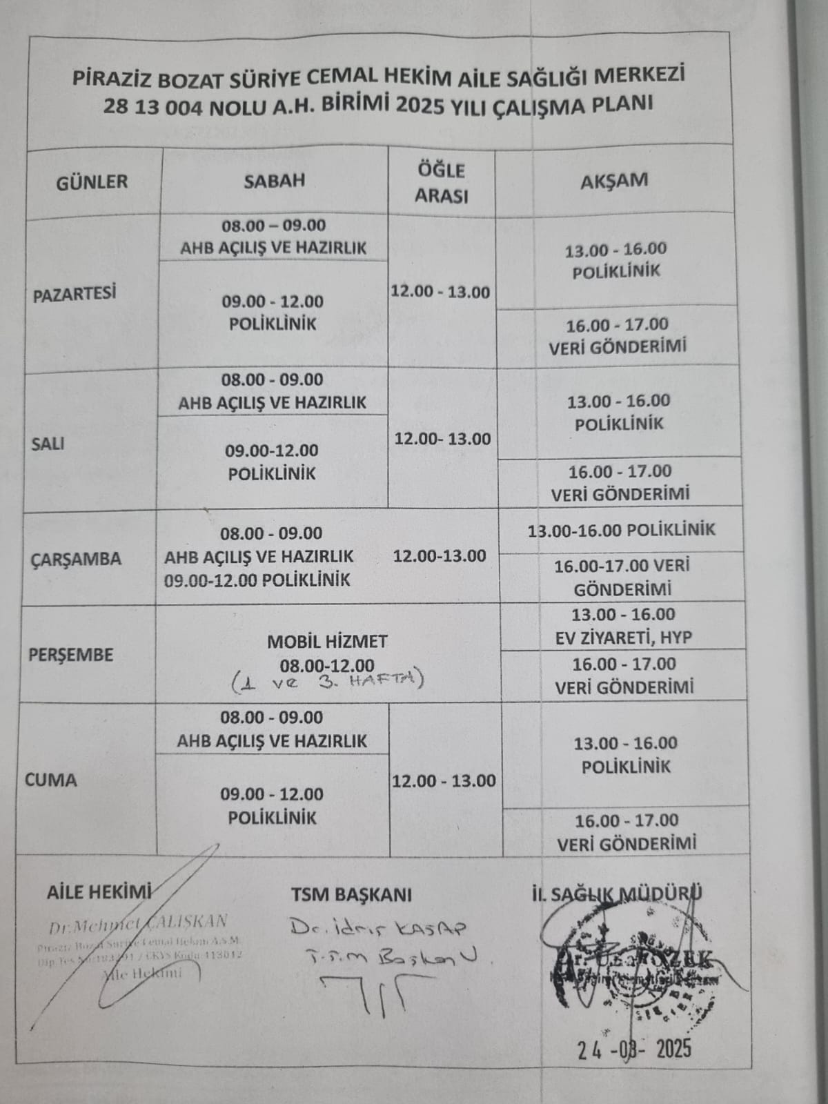 Pazartesi - Salı - Çarşamba - Cuma Günleri: 8:00 17:00